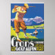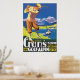 Cette illustration vintage représente une publicité pour une destination de golf Alpin.