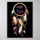 Une affiche avec un fond noir et sur laquelle est représenté un grand attrape-rêves avec Wild & Free écrit au centre du cercle.