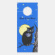 Cet affichette de porte en papier a un hibou noir avec de grands yeux bleus assis dans un arbre noir contre un ciel bleu nuit avec une pleine lune jaune et des étoiles jaunes. Customisez votre texte à l'avant et à l'arrière avec le modèle.