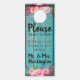 Ce joli Affichette de porte floral rustique Do Not Disturb présente un arrière - plan en bois bleu avec un script noir tendance décoré d'un bouquet floral rose aquarelle avec feuillage vert sur le dessus et le bas du design. Sur le devant, on peut lire : "S'il vous plaît ne dérangez pas, nous sommes restés debout pour célébrer avec le nouveau M. et Mme. (Ton nom ici)." Au verso, le texte dit : "Félicitations aux jeunes mariés, M. et Mme. (Votre nom ici). Customisez la police et la couleur du texte à votre goût.