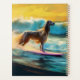 Plongez dans le monde ludique de l'aventure canine avec cette peinture captivante. Un chien en ébullition se rend aux vagues, chevauchant habilement le surf sur une plage baisée par le soleil. L'oeuvre d'art vibrante capte magnifiquement l'essence de l'excitation au bord de la plage tandis que le chien court sans crainte les vagues, incarnant l'esprit de plaisir et de liberté. Avec un mélange harmonieux de couleurs et de coups de pinceau dynamiques, cette pièce apporte la joie du surf et de la plage directement dans votre espace, ce qui en fait un ajout charmant à toute collection d'art.