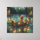 Set sail into the magic of the holiday season with this beautifully detailed illustration, showcasing a proud dog sitting in a festively decorated boat, gliding across a serene Christmas lake. The twinkling lights from nearby pine trees reflect off the water, casting a warm, festive glow that enhances the cozy ambiance. Ornaments dangle from the boat's sides, while glowing lanterns light the way, creating a scene that captures the true essence of Christmas warmth and joy. This nostalgic artwork brings a touch of holiday magic to any space, perfect for those who cherish the spirit of the season.