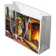Afghan Hound Fireplace with Christmas Lights Large Gift Bag
