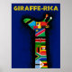 Vintage style travel poster for Africa featuring the iconic Giraffe. This poster is made using the national flags of the countries in Africa that are the native lands of the Giraffe. Kenya, Cameroon, Chad, Niger, Uganda, Namibia, Botswana, Zimbabwe, Zambia, Tanzania, Angola, and South Africa.