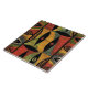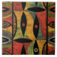 Ceramic tile with African abstract print in green, rust, gold and black.