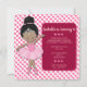 This ballerina birthday party invitation features a cute African American girl wearing a pink tutu and ballet slippers and custom text fields for you birthday party information.