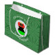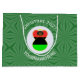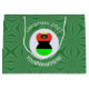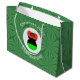 Large gift bag features an angel wearing the flag of the African Diaspora for holiday gift decorating or Christmas decor. The African American Flag Christmas angel is found inside a white circular fractal of squiggly squares. The background is a green fractal of squiggly squares. Add your own text or personalize with a name and the year. Might, also, make a nice Kwanzaa gift wrap.