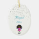 This adorable Irish Dance themed holiday Christmas ornament features a cute African American Irish dancer in a pink and purple solo dress dancing in a winter wonderland complete with snow, a Christmas tree and gifts. Personalize the back of the ornament with a name and year!