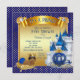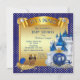 Royal blue and gold prince baby shower invitations with adorable African American ethnic baby prince on a pretty gold pillow on a beautiful royal blue and gold castle and royal coach background. These royal blue and gold prince baby shower invitations are easily customized for your event by simply adding your details.