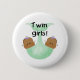 Kid style text reads "Twin Girls!" on baby announcement buttons and magnets featuring two African American baby girls in a green blanket!