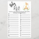 AFRICAN ANIMALS ABC BABY SHOWER GAME CARD