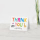 A menagerie of African animals and bright, happy colours make this baby shower thank you note a cheerful and fun way for the mom-to-be to send her message of thanks after a gender neutral, safari themed celebration. Personalize the from and name text on the front and give as a give to the mother to be on her shower day.