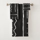 This exquisite set features intricate Kuba cloth-inspired thin lines, meticulously woven into a striking white on black pattern. The geometric designs pay homage to traditional African artistry, blending the timeless beauty of mud cloth with contemporary sophistication.