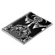 White: Used for shapes, patterns, and highlights, the white contrasts sharply against the black, emphasizing the artwork's features.
