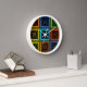 Chequered Pattern: The alternating colours of the square borders create a clear chequered design, serving as a dominant visual element throughout the artwork.