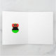 For your Christmas communications, this greeting card features an African American angel wearing the flag of the African Diaspora. She flies inside a white, fractal circle of squiggly squares, surrounded by a background of green squiggly squares. Add a name to personalize. Add a year to customize. Or, change the text to whatever you like, and use it for Kwanzaa.
