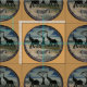 This artwork portrays a harmonious scene set within a circular frame, reminiscent of a medallion or cameo. The elephants are depicted trumpeting, suggesting a joyful return or a call, while the zebra stands watchfully in the foreground, adding depth to the composition.