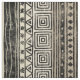 Fabric with a geometric pattern inspired by traditional motifs from Africa. It has a black ink pattern with neutral colour stripe background colours and a distressed texture for a rustic feeling. Perfect for creating your own safari or African themed crafts, decor and clothing!
