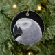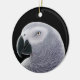 Original fine art design of an African Grey parrot by designer Carolyn McFann of Two Purring Cats Studio on a quality holiday ornament for caged bird fans.
