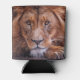 A photograph of a majestic African Lion adorns this can cooler!
