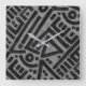 This wall clock features an African geometric motif pattern print. The design showcases black and gray colors, making it a striking addition to any room. Crafted from Grade-A acrylic, this 10.75-inch square clock is vibrantly printed using the AcryliPrint®HD process. It includes a non-ticking mechanism and a pre-installed backside hanging slot for easy installation. Perfect for indoor use, this clock requires one AA battery (not included).