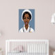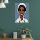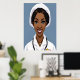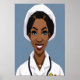 A African black nurse with white nurse clothes on a blue background. This is a AI generated art.
