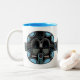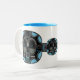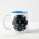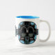 What do you get when you take a traditional African Tribal Mask & paint it w/ colours that were popular in the late 1950's early 1960's? This fun "African Pop" design as re-imagined by digital artist, Leslie Sigal Javorek. Black, medium blue, aqua, mauve, pinkish-grey & olive grey. Your choice of mug style & size.