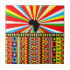 This vivid Kente cloth pattern design features red along with an array of other primary colours. The African continent rises above the pattern like a sun with rays of red, yellow, green and sky blue.