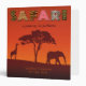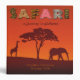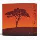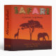 African safari landscape background: Silhouettes of a giraffe, a tree and an elephant against the sunset in orange and red shades. For your lovely pictures and memories of an unforgettable journey.