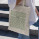 These bags were super cute (I purchased 3). The material is more of a canvas look & feel. The colour of the bag is slightly off white, but the letters look exactly as pictured. I took 3 photos in different lighting. Would recommend! I liked how there was an option to choose the font and colour of the name. The words are legible and the colours are exactly as pictured.