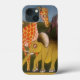 Introducing the "African Trio Art Print," a charming and vibrant artwork that captures the essence of African wildlife through its stylized depictions of three iconic animals: a giraffe, an elephant, and an okapi.