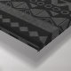 African art inspired stretched canvas wall decor done in a black and grey patterned background. An antique paper looking silhouette of an African woman playing the drums decorates the centre of the canvas.