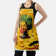 My Design features a stylized portrait of a Beautiful African woman wearing a colourful headwrap. The headwrap is adorned with green and yellow leaf patterns. Her face is filled with a sunset silhouette, complete with birds flying across the sky and a landscape with trees. She wears large, ornate earrings and a beaded necklace. Original Pop Art Style Vector Illustration Copyright BluedarkArt TheChameleonArt.