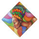 African Woman with Wax Traditional Fabric Graduation Cap Topper