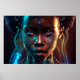 Digital art painting portrait of a beautiful young black woman with striking blue eyes and cyberpunk details.