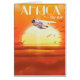 Africa By Air - Une affiche de voyage de style vintage et de dessin animé sur le continent africain pendant un coucher de soleil chaud et humide.