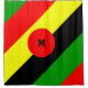 African inspired Red, Yellow, Black and Green diagonal striped shower curtain with monogram option.