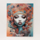 This striking artwork is a vibrant, surrealistic portrayal of a figure that blends traditional African elements with bold, futuristic esthetics. The central figure is a woman with blue-toned skin, which gives her an almost ethereal or otherworldly presence. Her expression is serene, with large, expressive eyes and full lips. Her hair is an explosion of abstract forms resembling colorful clouds and intricate curls, suggesting creativity, thought, or possibly a crown-like symbol of wisdom and imagination. The vivid hues—ranging from pinks, blues, oranges, and reds—bring the composition to life and evoke a sense of energy and vibrancy.