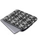 The sleeve is made of nice feeling material and seems very durable. I'm not sure how easy it'll be to clean, but the construction seems sound and the fabric is quick thick. I also like the double zipper. The printing is lovely and appears durable. The white on black contrast is nice, and the design very elegant.