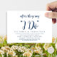 Modern Script in Classy Navy Blue themed, wedding elopement invitation card (After they say I Do). It is perfect for your wedding elopement casual lakeside wedding dinner, dancing and party.
