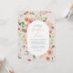 A soft and romantic watercolor wedding invitation featuring an oval frame surrounded by blush, peach, and golden florals. The warm afterglow palette and delicate feminine details create an elegant garden-inspired design perfect for any spring or summer celebration. Easily personalize all text for your wedding day.