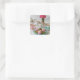 Our most popular Afternoon Tea image on a square sticker, Elegant silver tea service, vintage china, pink roses and cakes, fabulous.