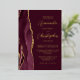 The left-hand edge of this elegant modern wedding invitation features a burgundy red watercolor agate border trimmed with faux gold glitter. The customizable text combines script and sans serif fonts in real gold foil on a burgundy background. The reverse side features a matching agate design.