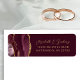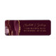 Le bord gauche de cette élégante étiquette d'adresse de retour de faire-part de mariage moderne comporte une bordure d'aquarelle bordeaux ornée d'une parties scintillant en faux or. Le texte personnalisable combine écriture manuscrite couleur or et polices sans serif sur un arrière - plan rouge bordeaux.