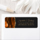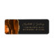Le bord gauche de cette élégante étiquette d'adresse de retour de faire-part de mariage moderne comporte une bordure d'aquarelle orange brûlée, recouverte d'une parties scintillant en faux or. Le texte personnalisable combine écriture manuscrite couleur or et polices sans serif sur un arrière - plan noir foncé.