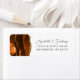 Le bord gauche de cette élégante étiquette d'adresse de retour de faire-part de mariage moderne comporte une bordure d'aquarelle orange brûlée, recouverte d'une parties scintillant en faux or. Le texte personnalisable combine écriture grise fusain et polices sans serif sur un arrière - plan blanc.