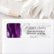 Le bord gauche de cette élégante étiquette d'adresse de retour faire-part de mariage moderne comporte une bordure d'aquarelle violette ornée d'une parties scintillant en faux argent. Le texte personnalisable combine écriture manuscrite violet foncé avec police de cuivre noir sur un arrière - plan en marbre gris et blanc.