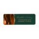 Le bord gauche de cette élégante étiquette d'adresse de retour faire-part de mariage moderne comporte une bordure d'agate aquarelle dans les tons de rouille et d'orange brûlé, parée de parties scintillant en faux or. Le texte personnalisable combine écriture manuscrite couleur or et polices de cuivre sur un arrière - plan vert chasseur.