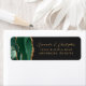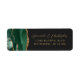 Le bord gauche de cette élégante étiquette d'adresse de retour de faire-part de mariage moderne comporte une bordure d'aquarelle vert émeraude bordée d'une parties scintillant en faux or. Le texte personnalisable combine écriture manuscrite couleur or et polices sans serif sur un arrière - plan noir foncé.