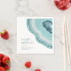 Not all wedding designs are created equal. The asymmetrical layouts for some of the pieces in this striking wedding set prove that's a good thing!. The coordinating wedding paper napkin shown here features a corner accent with wavy bands of colour in contrasting shades of teal blue and blush pink around a glittering crystal effect to forming a geode/agate. Easily add your names, wedding date and personal 'thank you' message using the provided template. Search ID647 to see all the coordinating pieces in this set.